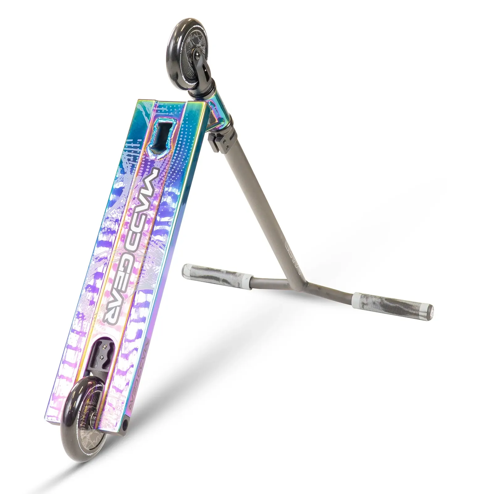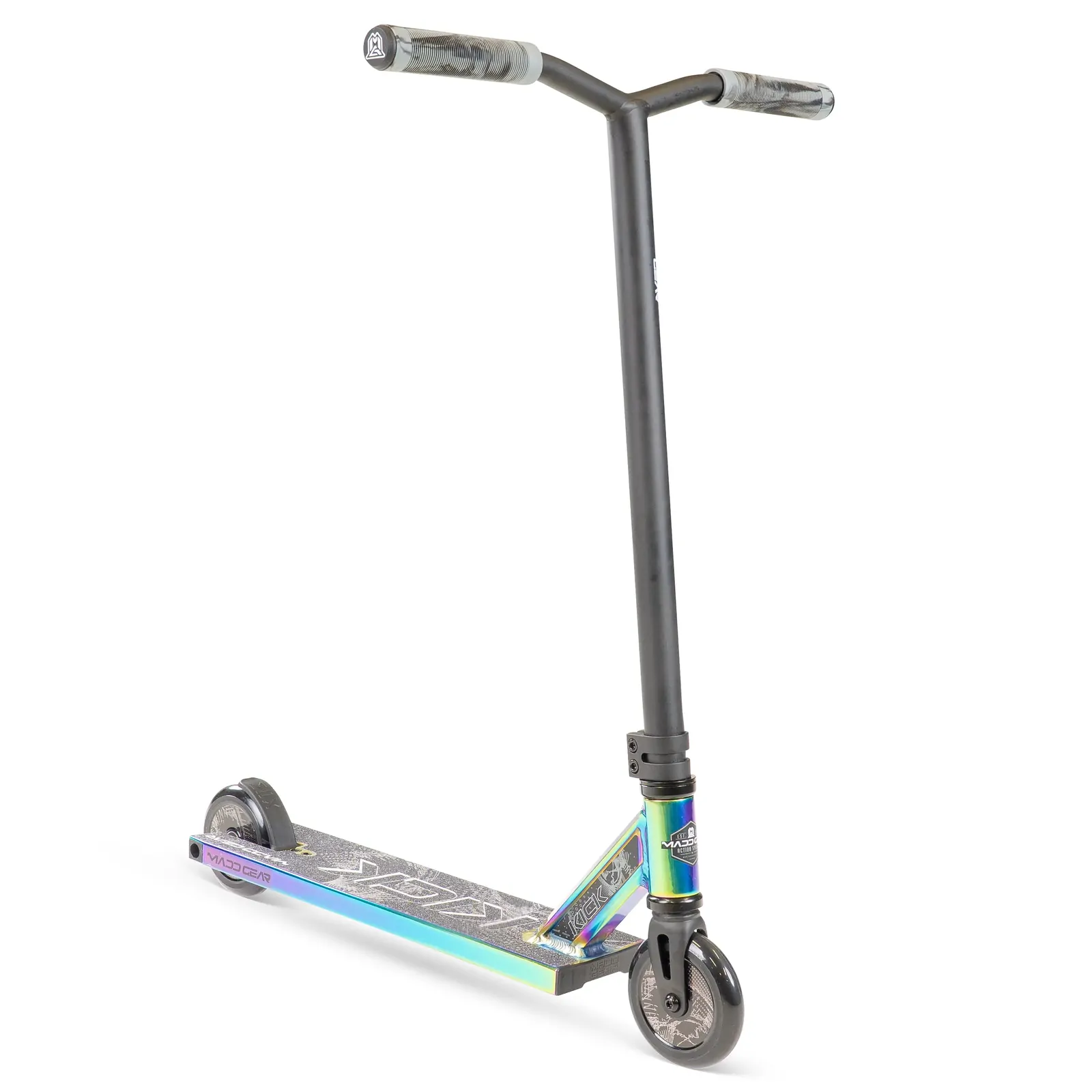 The Madd Gear Kick Extreme Scooter is designed for riders who want a smooth, comfortable ride with a finish that turns heads. What truly sets this scooter apart is its striking neochrome colourway, delivering a bold, high-impact look that shifts and reflects in the light for a premium, eye-catching finish.