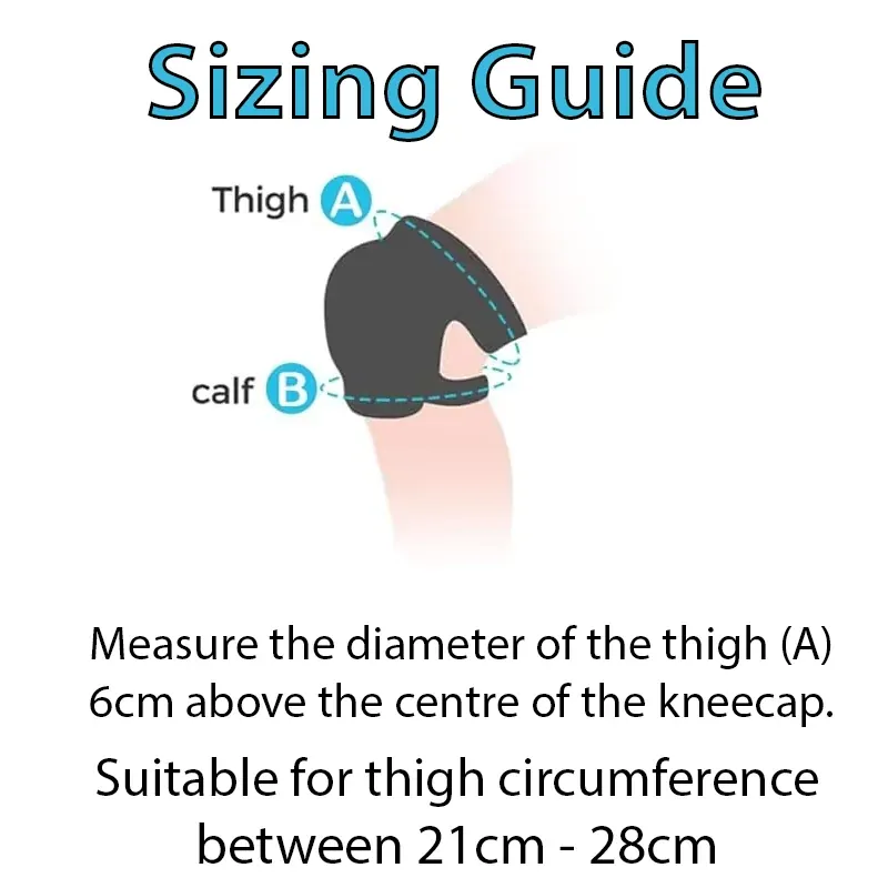 Measure the diameter of the thigh 6cm above the centre of the kneecap and then choose the best fitting size from the measurements below.