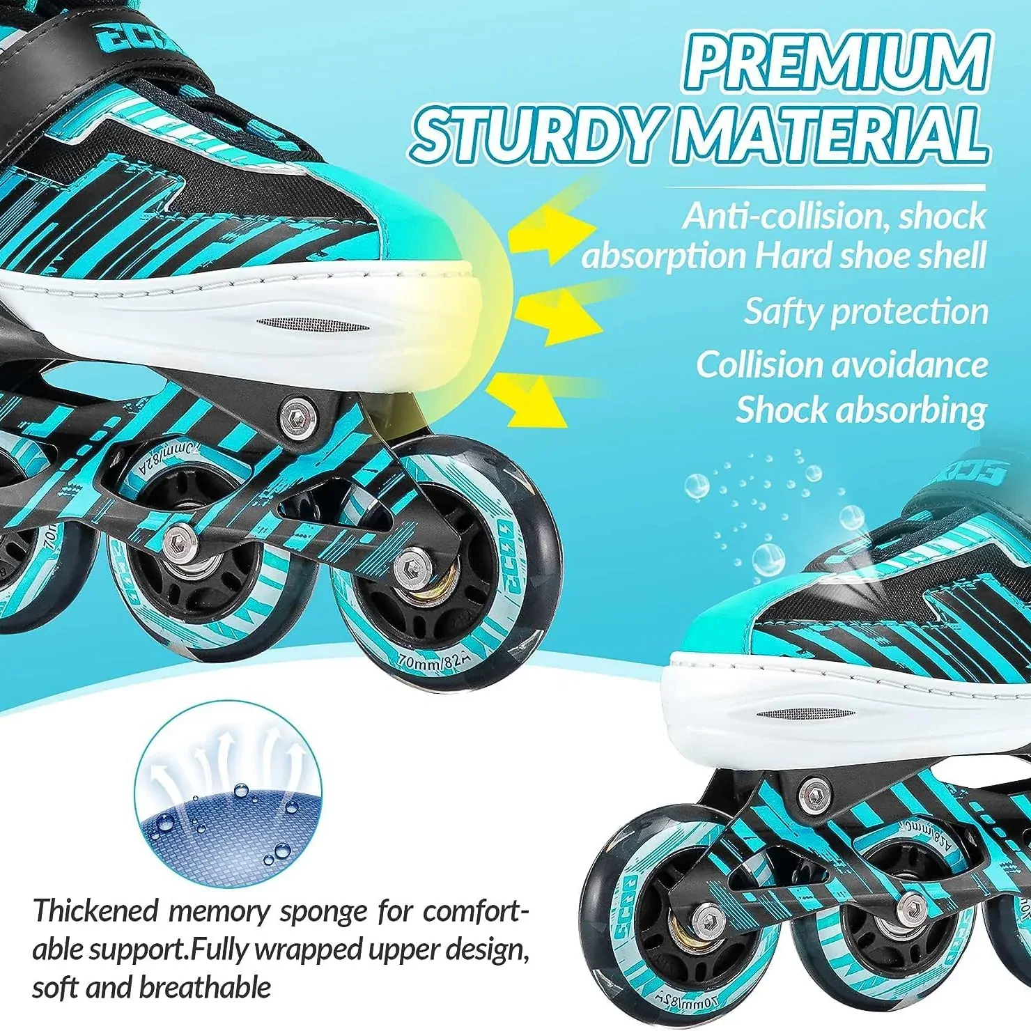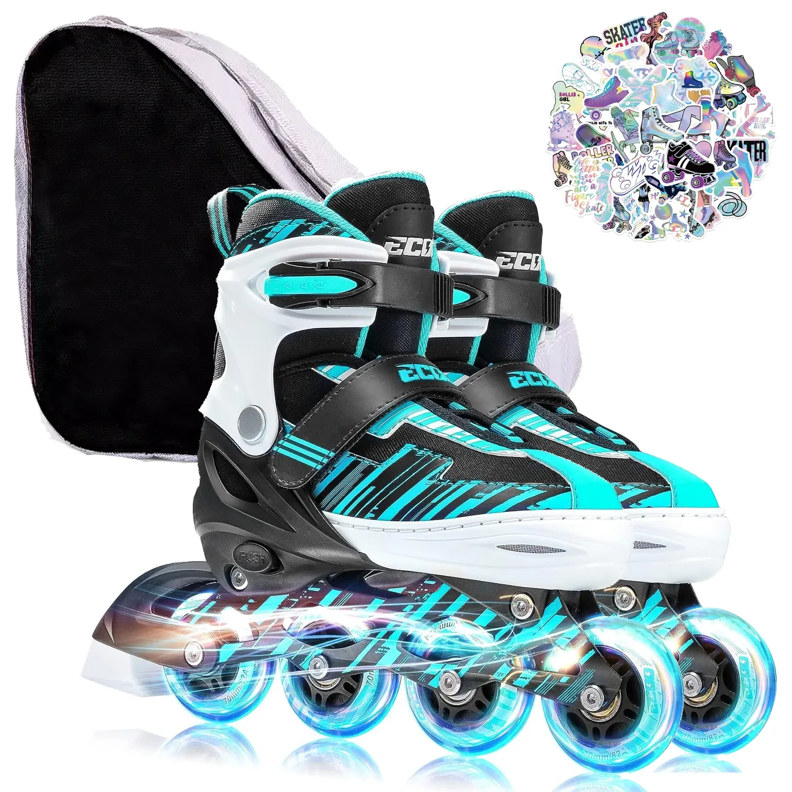 Ecoo Inline LED Skates - Cyan Medium 20cm-22cm