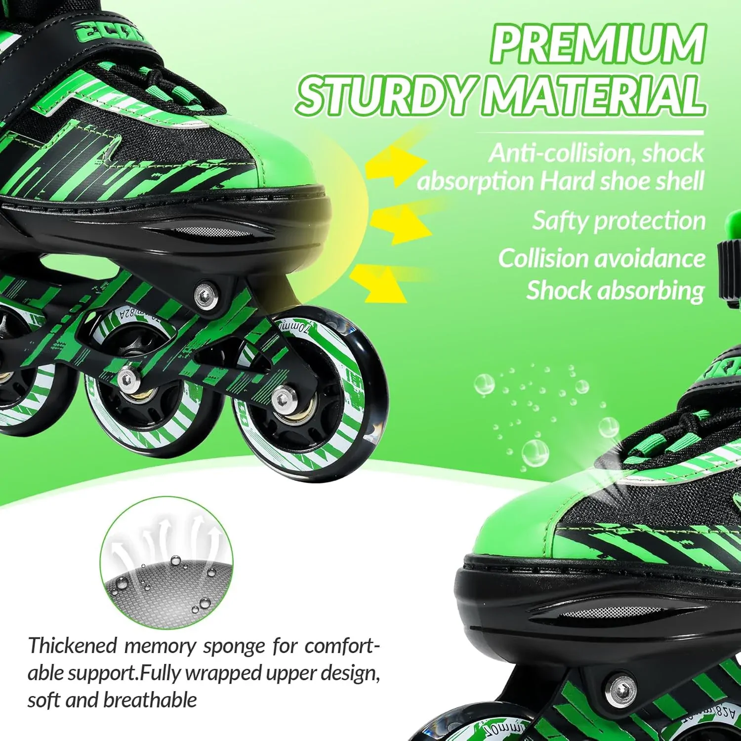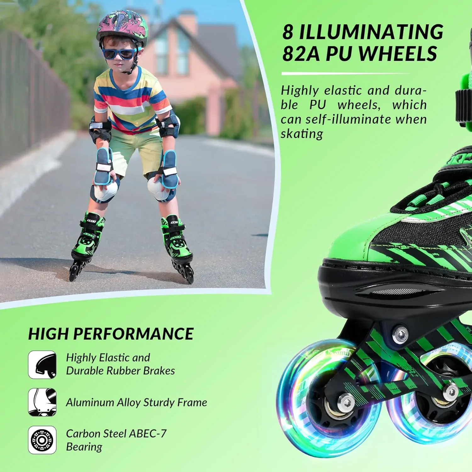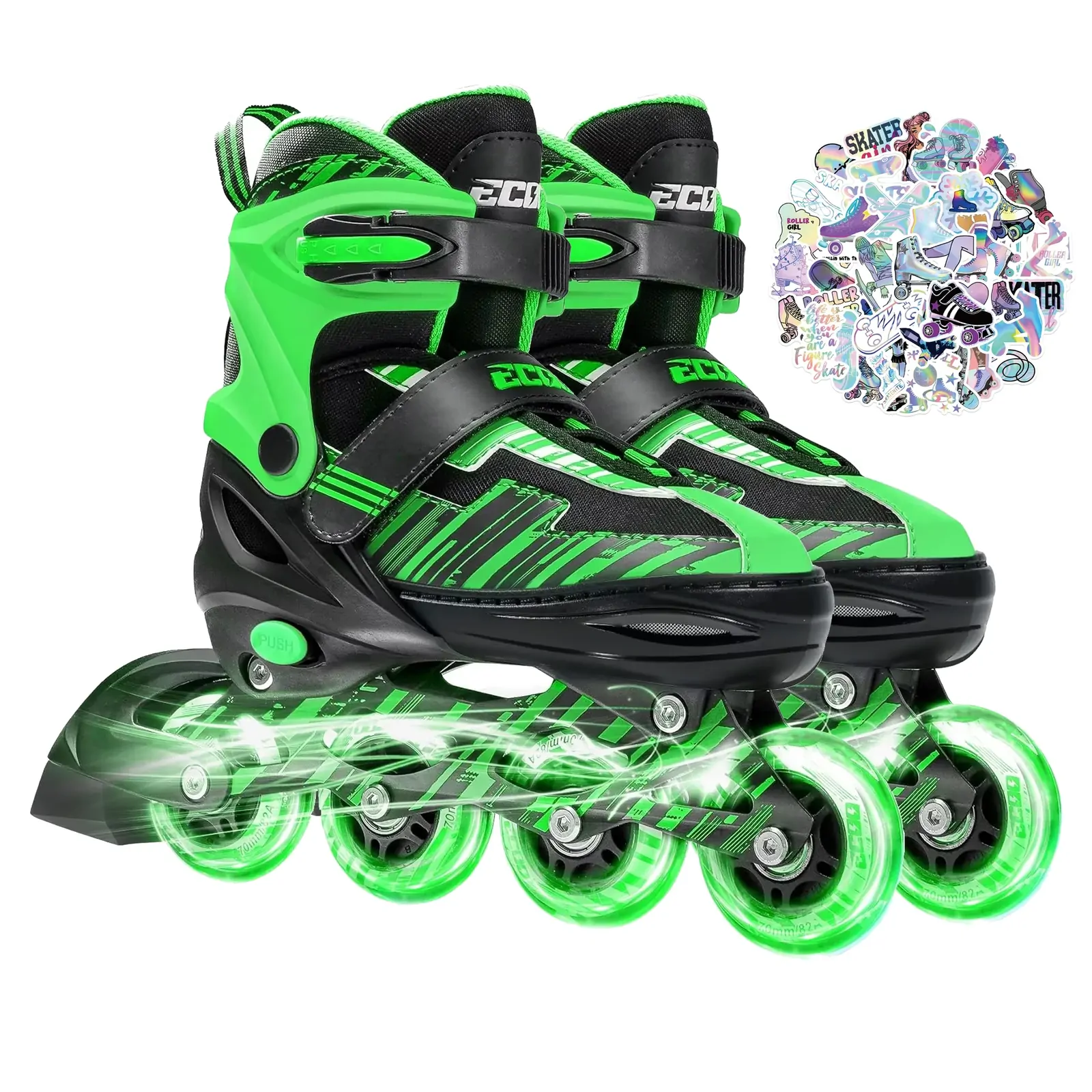 Ecoo Inline LED Skates - Green Small 17cm-19cm