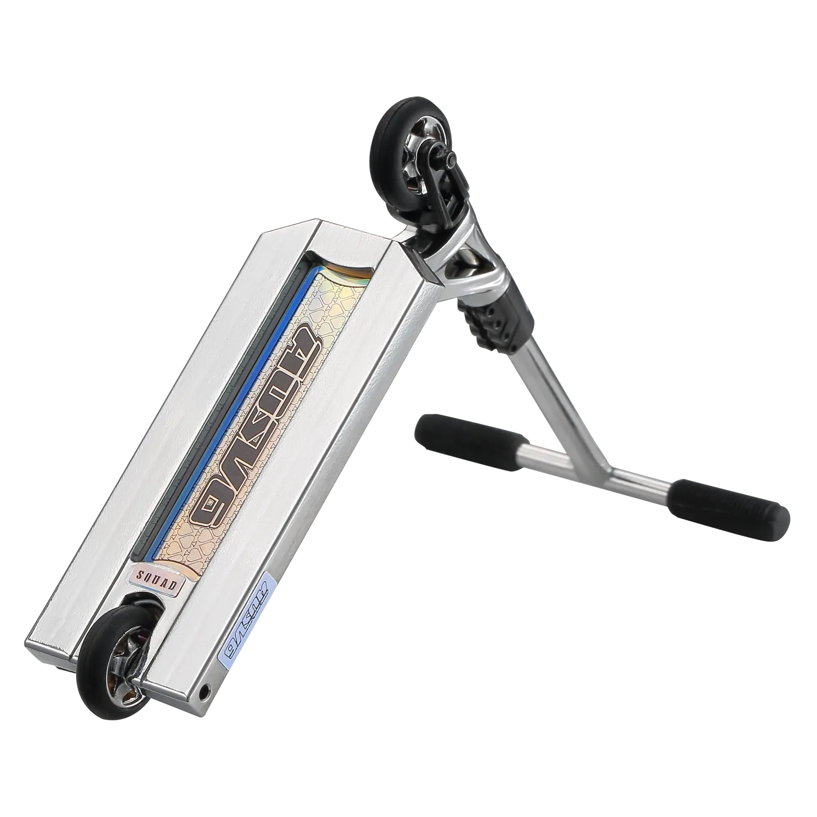 Featuring premium pocket-sized aluminum AOSV6 Squad Deck with comfy finger pad coming in at 2.5” x 1.0” (63mm x 25mm), mini-thermal bars, mini-omen clamp, soft grips, ultra-smooth bearings in the headset and our metal core wheels. Designed with true-scooter technology by the leading pro scooter brand riders trust most. Balanced and built with high quality components to mimic your favorite scooter tricks.