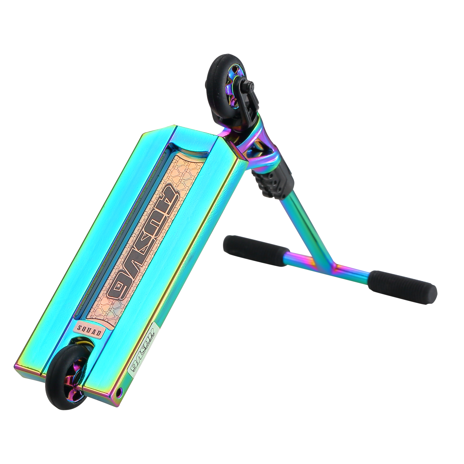 Featuring premium pocket-sized aluminum AOSV6 Squad Deck with comfy finger pad coming in at 2.5” x 1.0” (63mm x 25mm), mini-thermal bars, mini-omen clamp, soft grips, ultra-smooth bearings in the headset and our metal core wheels. Designed with true-scooter technology by the leading pro scooter brand riders trust most. Balanced and built with high quality components to mimic your favorite scooter tricks.