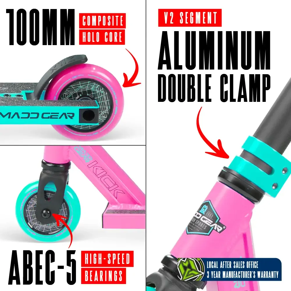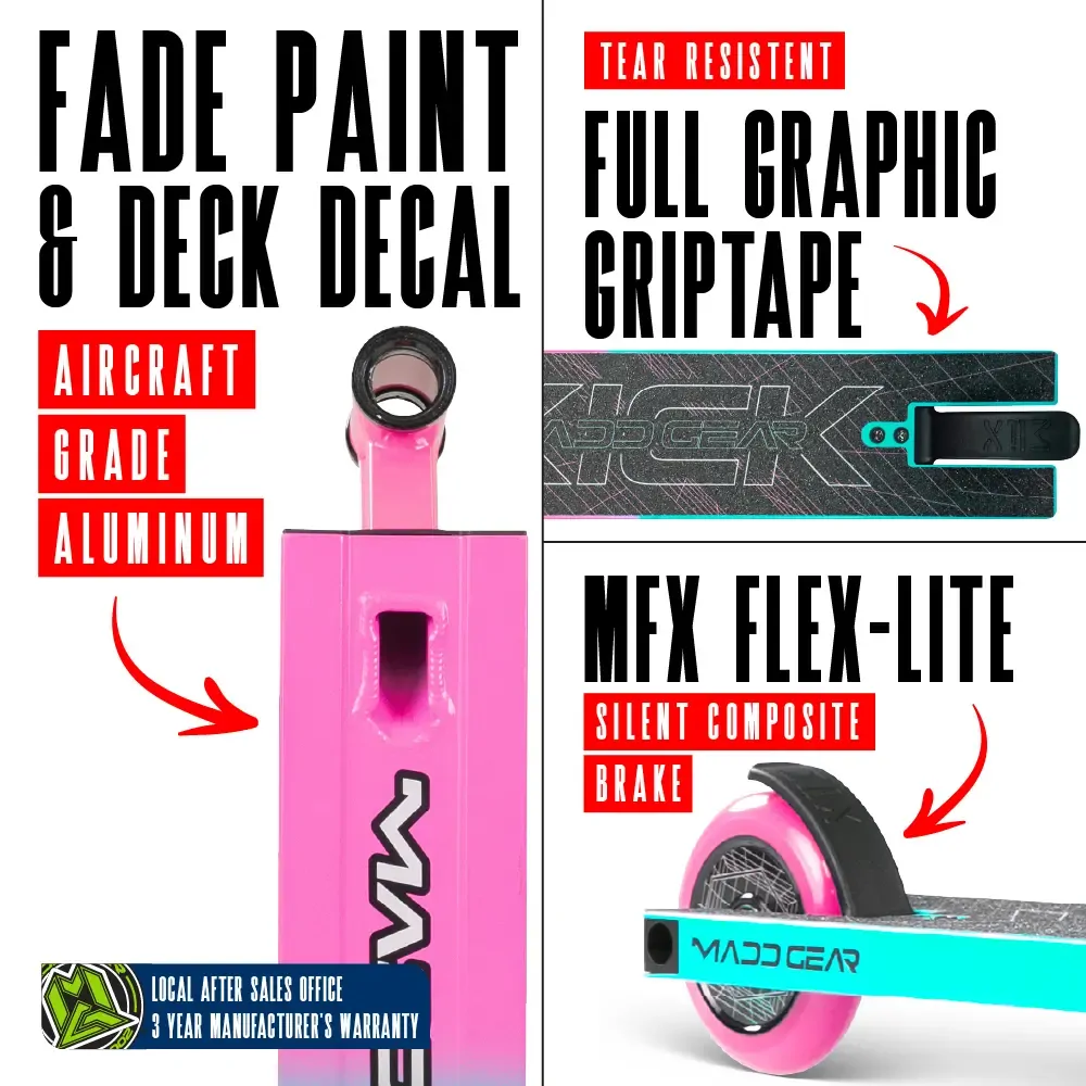 The Madd Gear Kick Pro X Scooter is designed for riders who want a smooth, fast and dependable ride for everyday cruising. Built by Madd Gear, a brand known worldwide for quality scooter design, the Kick Pro X focuses on comfort, durability and effortless control.