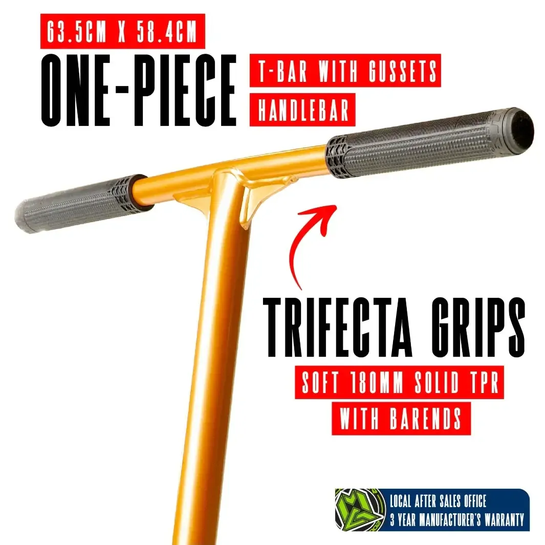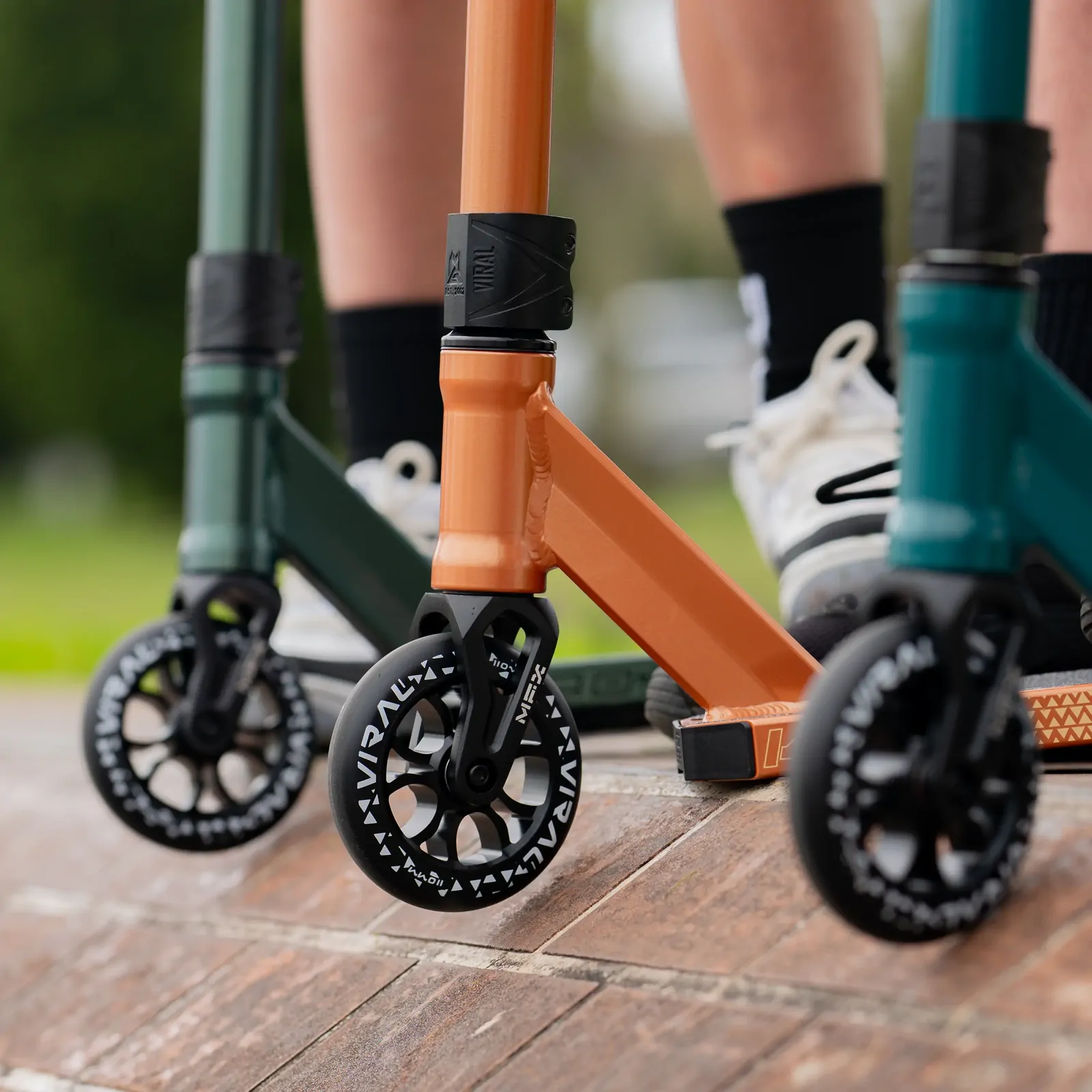 Built around a solid, well-balanced deck and strong handlebars, the Viral Kaos offers a planted feel that helps riders stay stable when learning new tricks and improving consistency. Smooth-rolling wheels and quality bearings provide reliable speed and predictable roll-outs, while the refined geometry keeps the scooter responsive without feeling unstable.