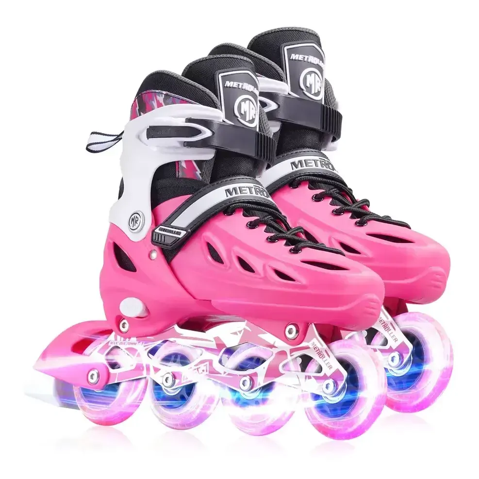 BONUS ITEMS! Buy Metroller 2 in 1 LED Inline Roller Skate Combo - Pink - Large 22.4cm-24cm Today & Receive These For FREE!