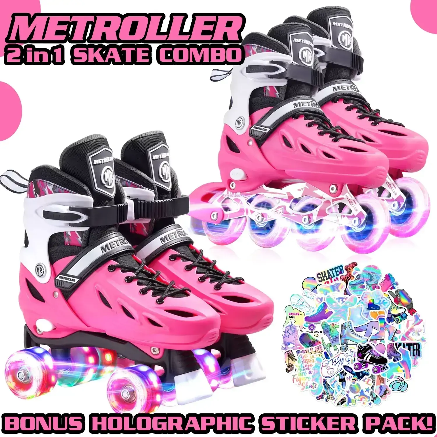 Metroller 2 in 1 LED Inline Roller Skate Combo - Bonus Holographic 25 Sticker Bomb Pack Valued at $20!